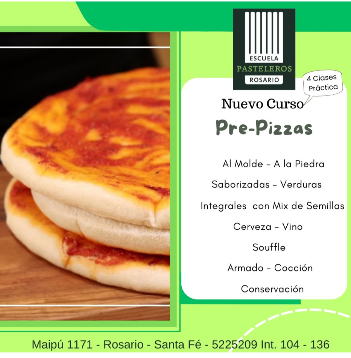 En nuestro curso corto de prepizzas, te enseñaremos a crear la base perfecta para tus pizzas caseras: crocantes, esponjosas y listas para todss tus Cubiertas favoritos.